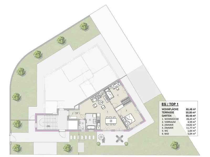 ca. 35,02 m² Wohnfläche 1 Zimmer
