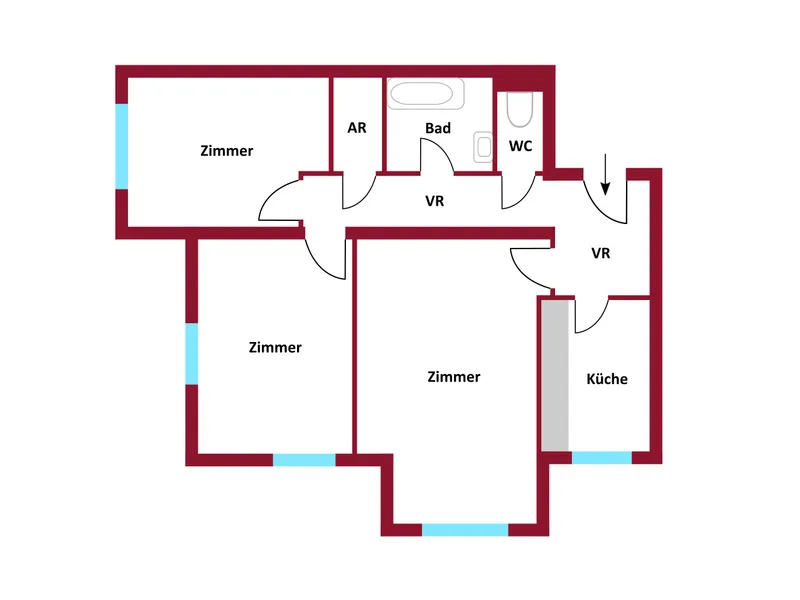 ca. 31,28 m² Wohnfläche 1 Zimmer