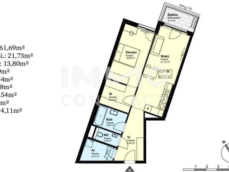 ca. 46,71 m² Wohnfläche 2 Zimmer