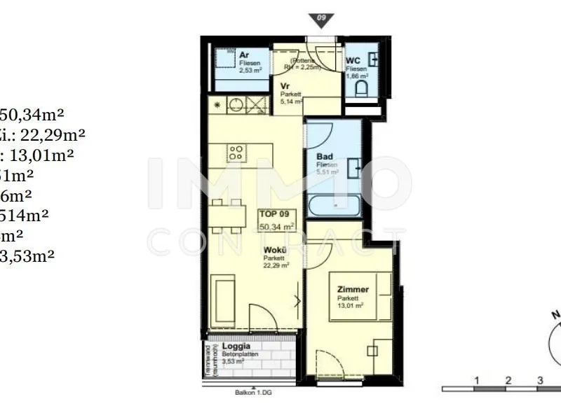 ca. 51,05 m² Wohnfläche 1,5 Zimmer