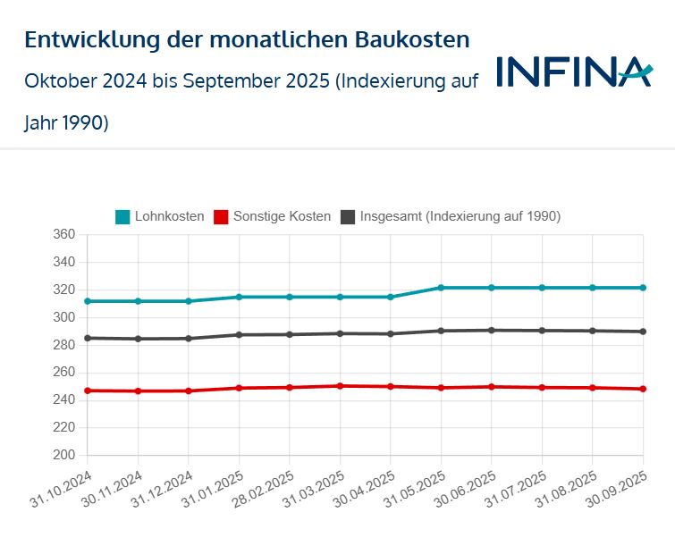 Die Entwicklung der Baukosten in den letzten 12 Monaten.