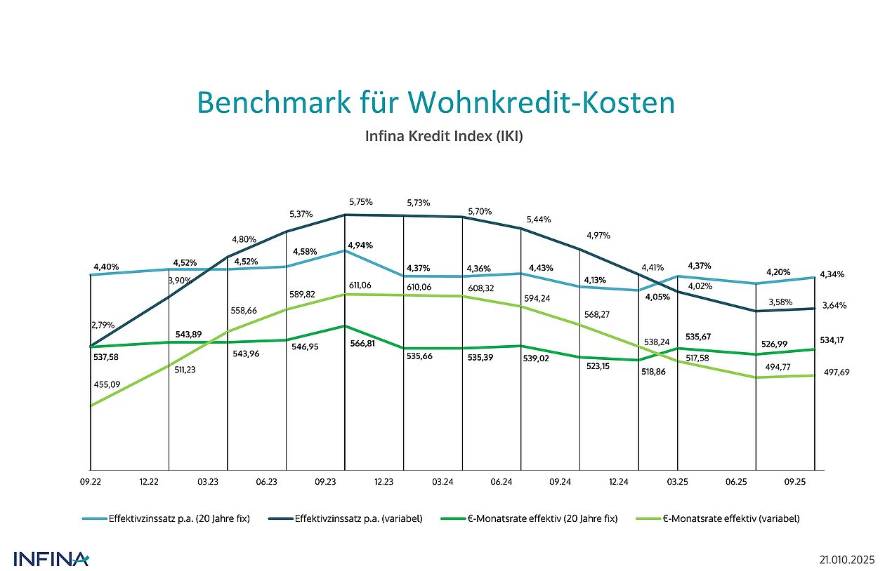 Als allgemeine Orientierungshilfe für die Kosten besicherter Wohnkredite wurde von der INFINA Credit Broker GmbH, Österreichs führendem Wohnbau-Finanz-Experten, ein Kreditindex (IKI) entwickelt, der seit vielen Jahren periodisch ermittelt wird: